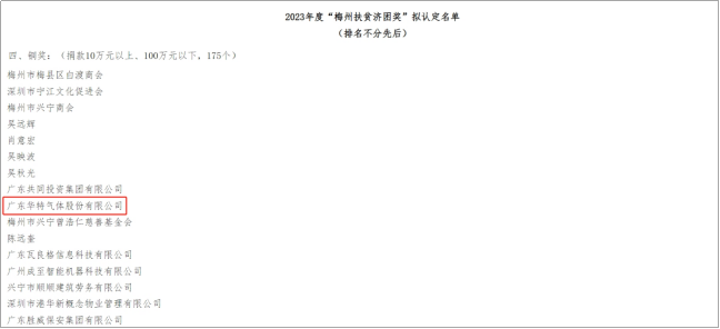 同時,據梅州市農業(yè)農村局發(fā)布的《2023年度“梅州扶貧濟困獎”擬認定名單公示》顯示,公司也入選了該年度扶貧濟困獎的銅獎名單。這一榮譽的獲得,不僅體現了公司在扶貧濟困方面的積極貢獻,更彰顯了公司對社會責任的擔當。